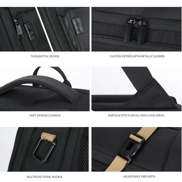 The Aoking SN4041 is a sleek and durable 25-liter business backpack designed for professionals and commuters. Measuring 30 × 19.5 × 43.5 cm and weighing 0.81 kg, it comfortably fits laptops up to 15.6 inches. Constructed with reinforced bartack stitching on high-load areas and equipped with metal zippers, it ensures long-lasting performance. The backpack features an anti-theft hidden pocket on the back for added security. Its minimalist black design makes it suitable for various settings, from daily commutes to business trips.